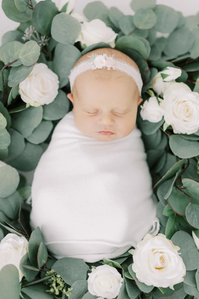 As a full-service newborn photography studio, our clients enjoy perks such as a full studio wardrobe with over 100 size-inclusive gowns for mamas, shirts and pants for dads, and outfits for babies and children from birth to size 10. We'll coordinate professional hair and makeup in the comfort of your own home, and guide you through selecting the perfect family heirlooms for your home.